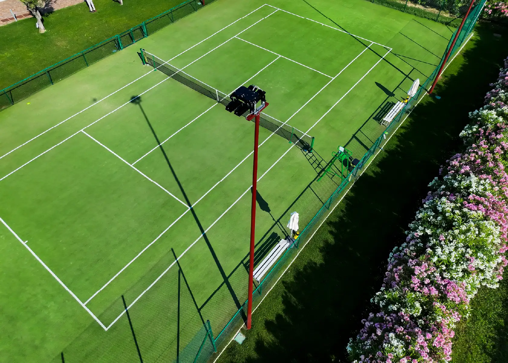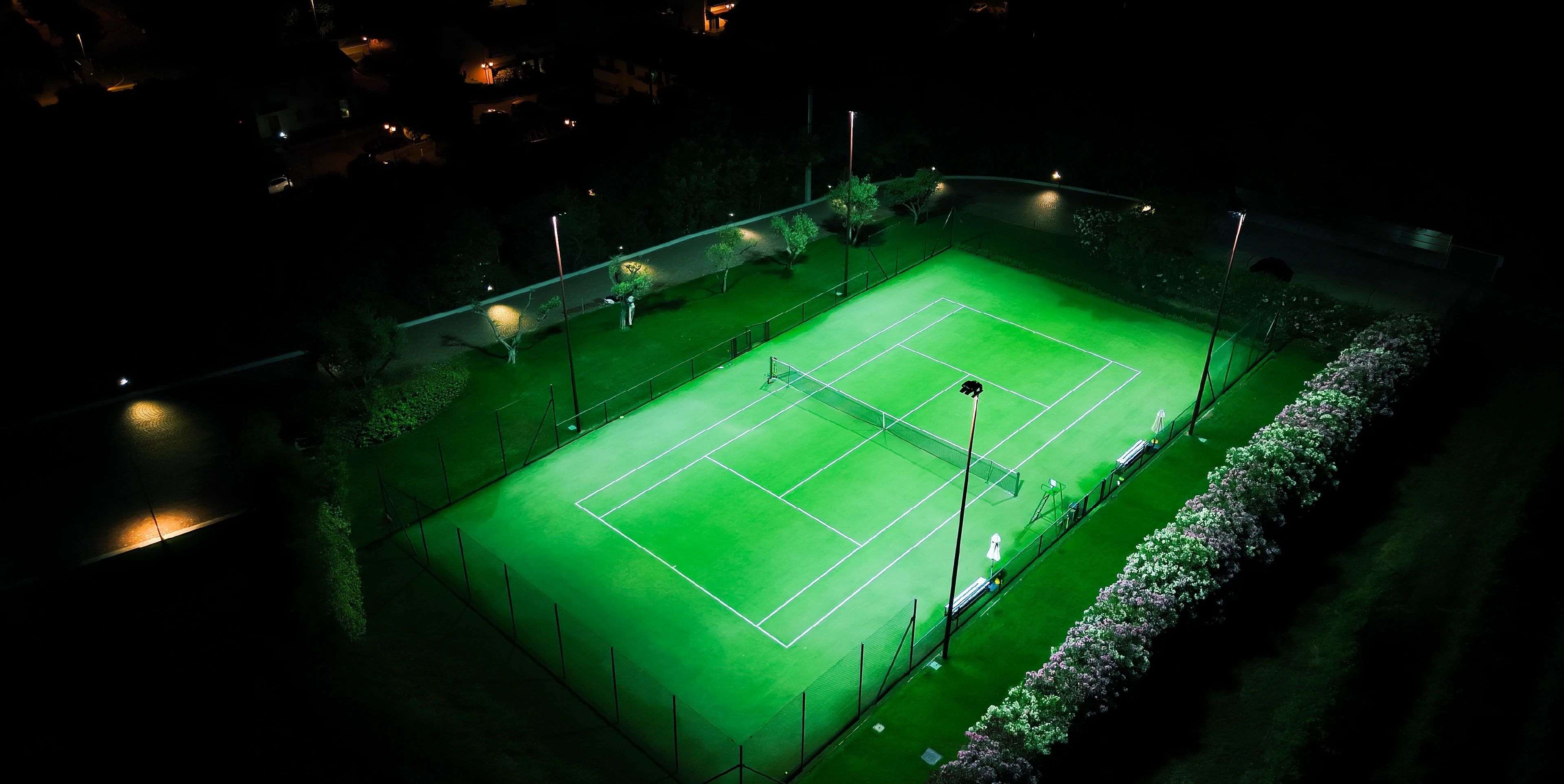 È stato progettato e realizzato un nuovo impianto elettrico e di illuminazione a LED per il campo da tennis, con l’obiettivo di garantire un’illuminazione uniforme, efficiente e adatta al gioco in orari serali.