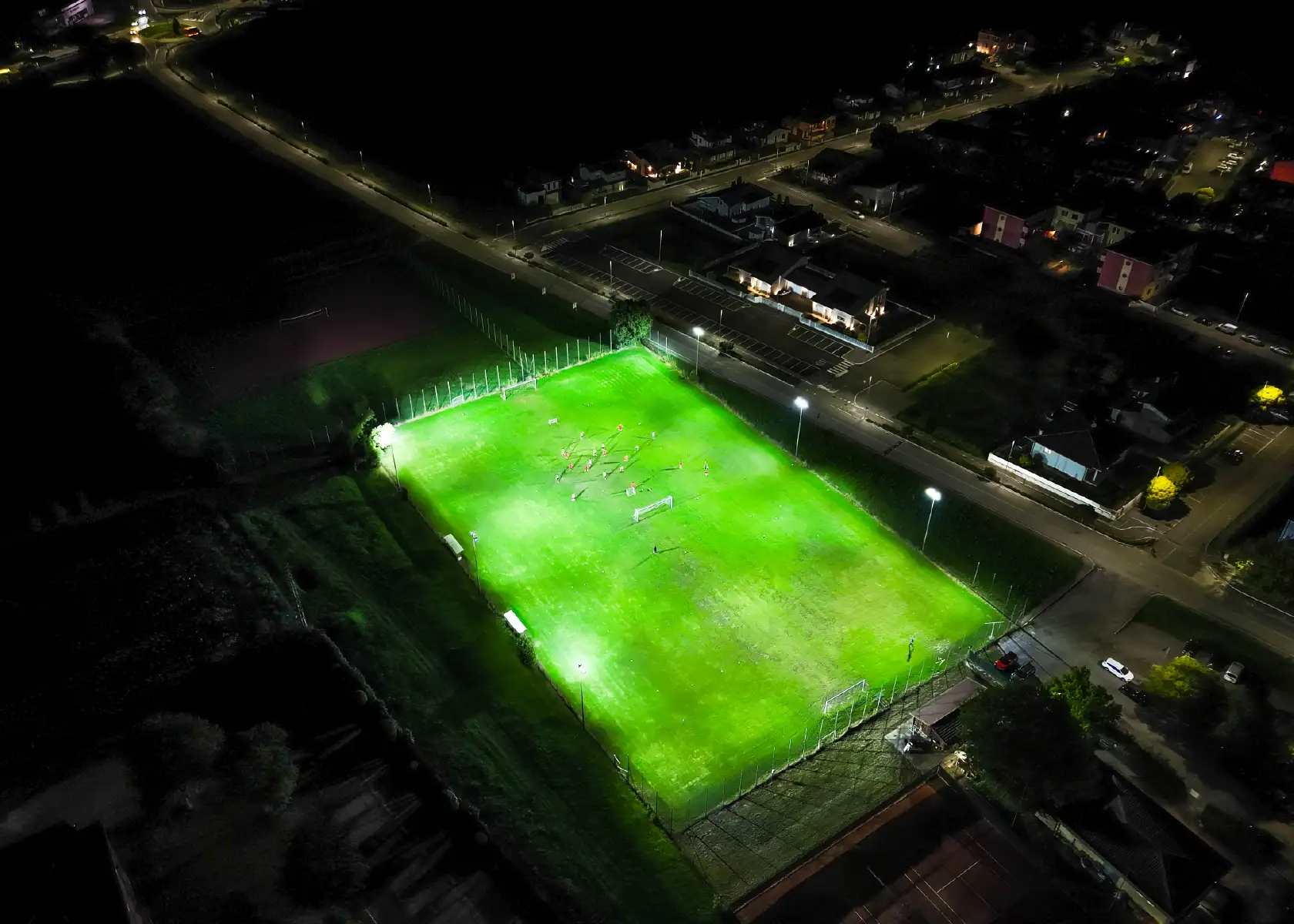 L’intervento, completato in 12 giorni lavorativi, ha permesso di portare l’illuminamento medio da 0 a 166 lux sul campo principale e da meno di 100 a 138 lux sul campo d’allenamento, riducendo al contempo la potenza complessiva installata e migliorando in modo significativo l’efficienza energetica, la qualità visiva e la sicurezza dell’impianto sportivo.