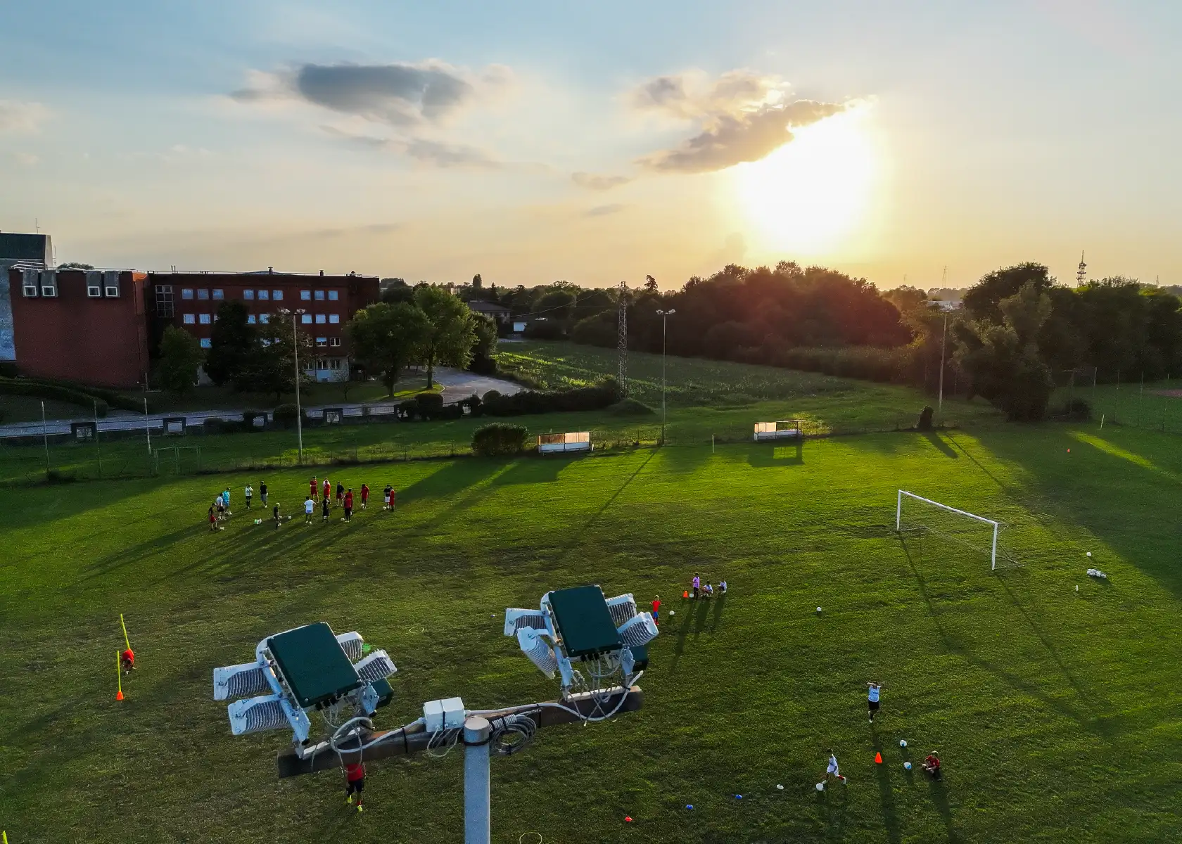 Sul campo d’allenamento, invece, è stato eseguito un relamping completo: sui 6 pali esistenti (12 metri fuori terra) sono stati installati 2 proiettori LUMOSA CS460 PRO da 860 W ciascuno, per un totale di 12 nuovi apparecchi LED.