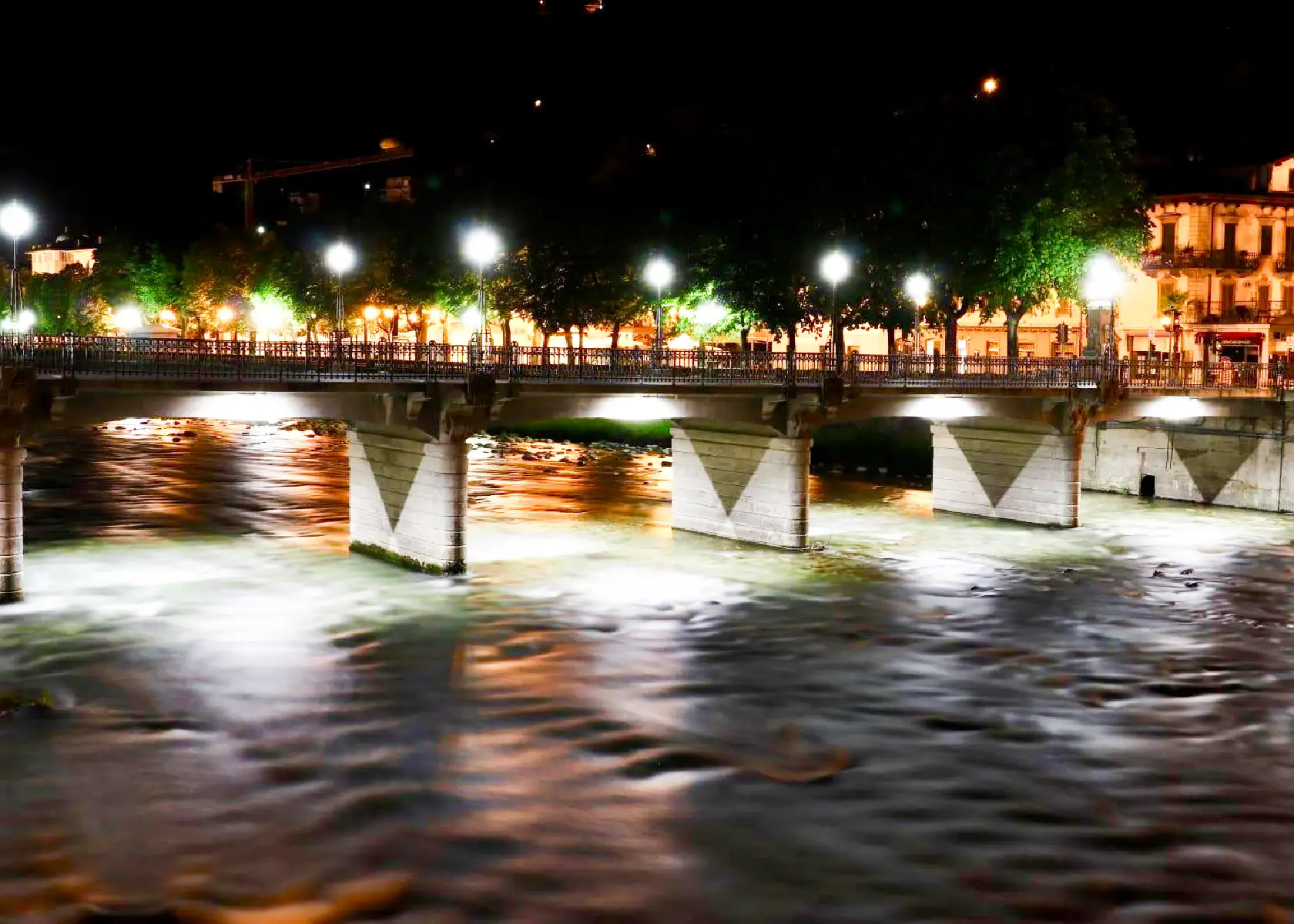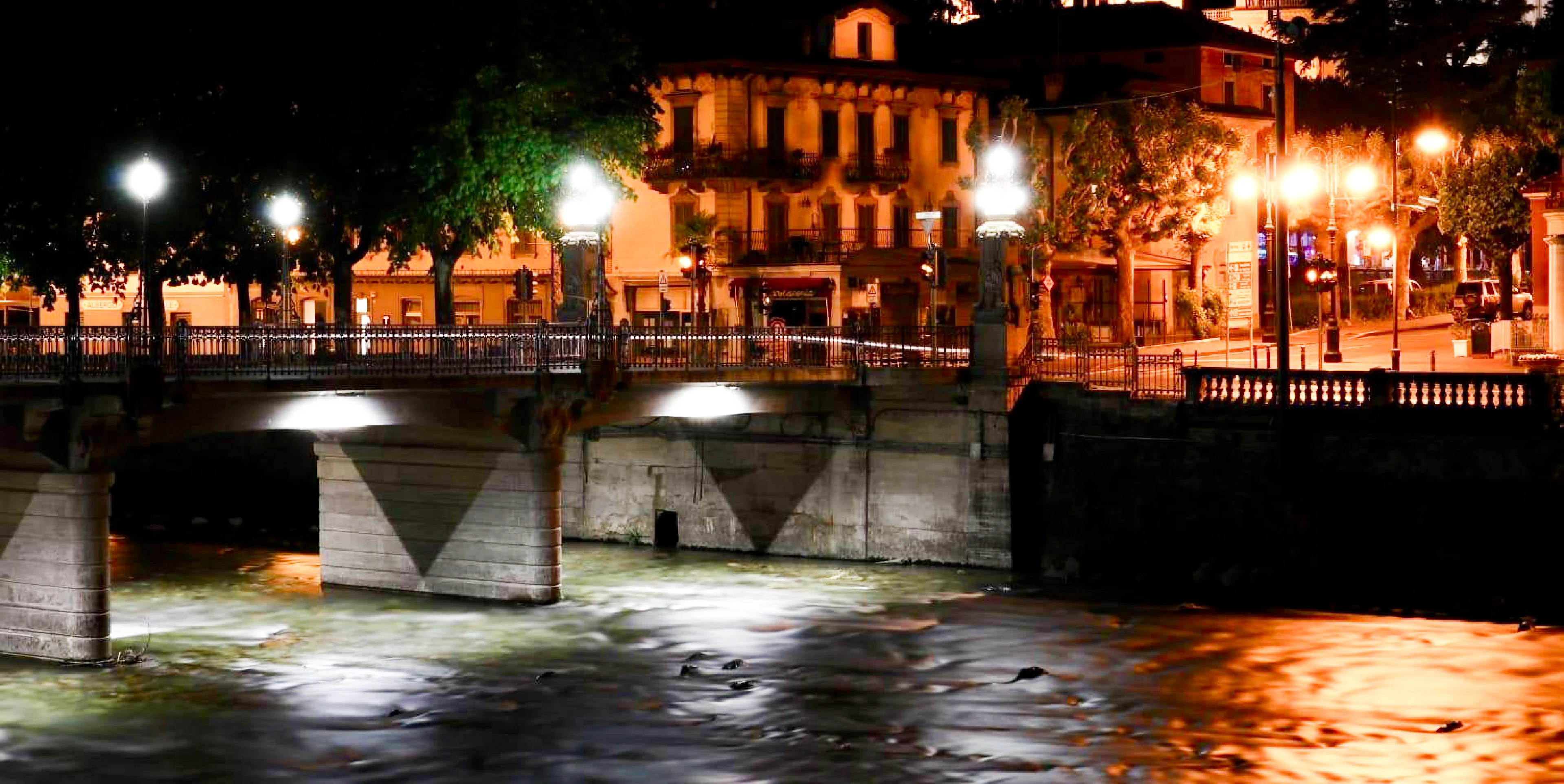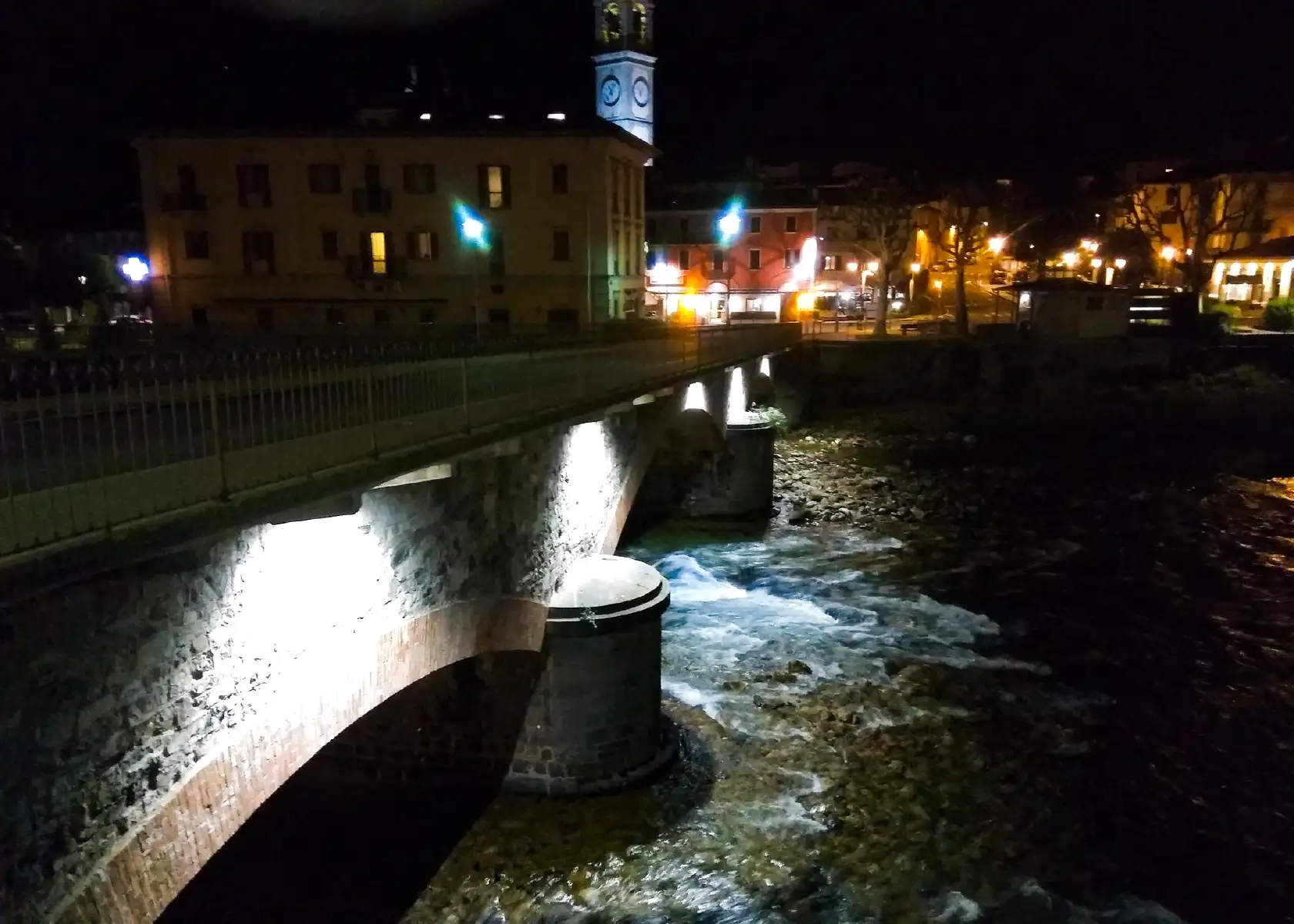 Il ponte storico della città è oggi illuminato, garantendo più sicurezza e creando riflessi suggestivi sull’acqua che valorizzano il centro anche di sera.